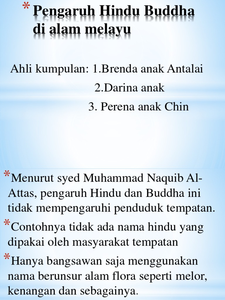 3AGAMA BUDDHA DIWARISI NEGARA MYANMAR THAILAND LOAS KEMBOJA VIETNAM. PENGARUH AGAMA HINDU-BUDDHA 1PERINGKAT AWAL MENGAMALKAN KEPERCAYAAN ANIMISME TUHAN ALAM SEMULAJADI. Sedangkan pengaruh nonfisik merupakan tinggalan yang memengaruhi adat pola pikir ataupun perilaku pada masyarakat masa kini.
